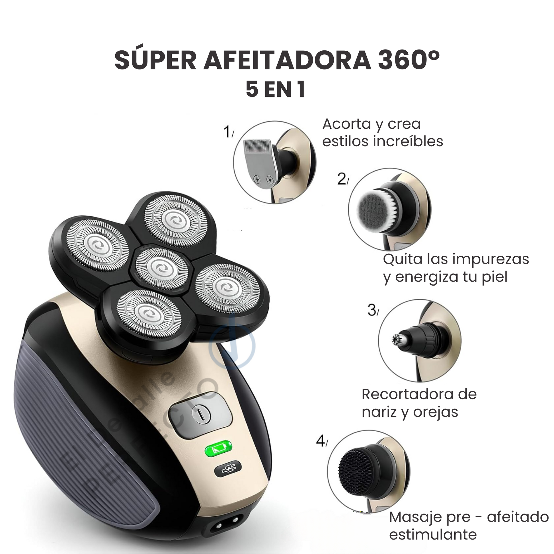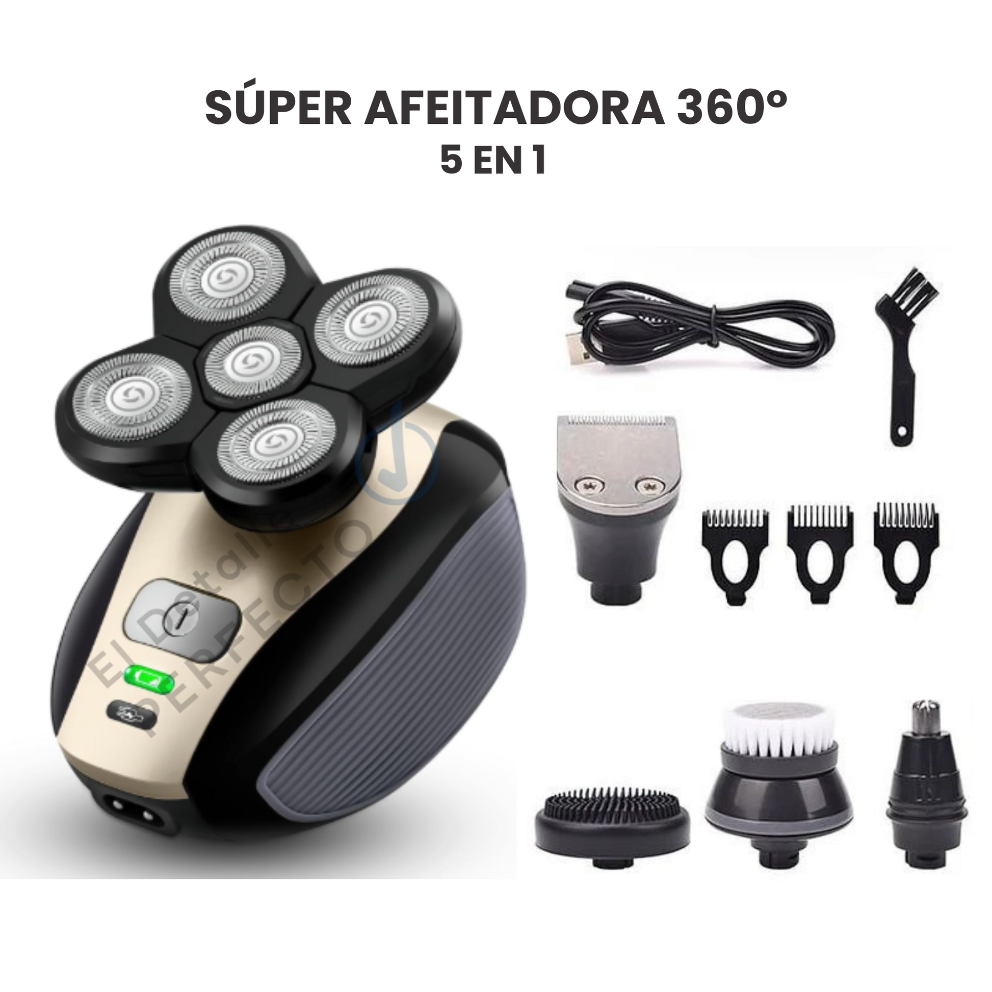 🔸 ¿Solo sirve para afeitar? Esta afeitadora cuenta con 5 servicios en un solo aparato: Perfilar, crear estilos modernos y deivertidos, masajear tu piel, cortar los vellos de la nariz y orejas.